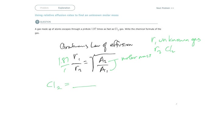 Using Graham S Law Of Effusion To Find Molar Mass Of A Gas Youtube